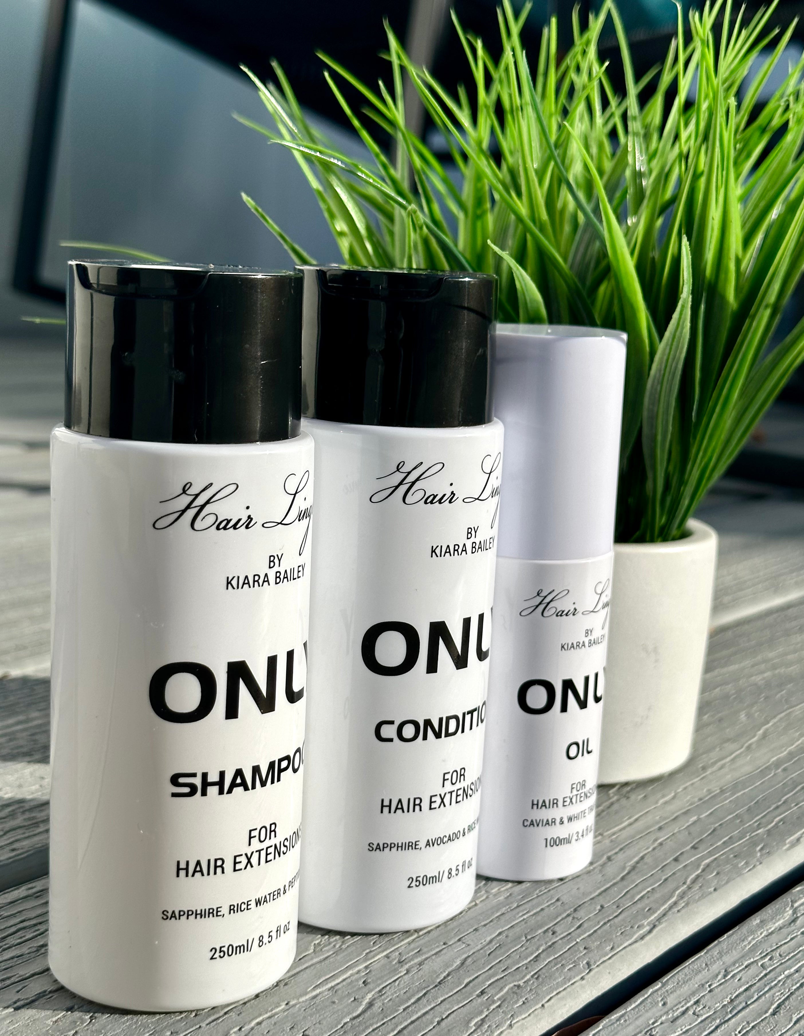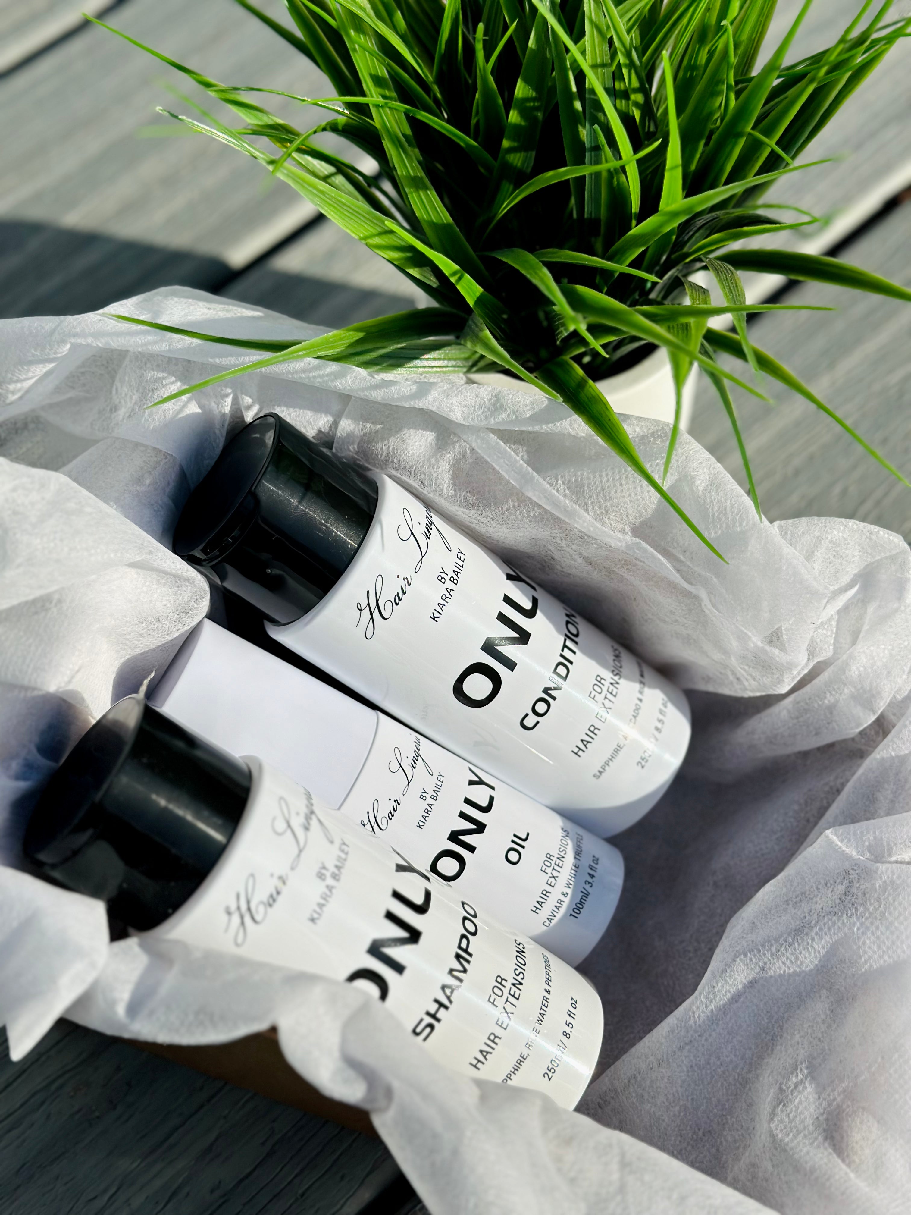 ✨ ONLY ✨ is the first and only haircare line specifically crafted for hair extension maintenance, offering a complete range of Shampoo, Conditioner, and Hair Oil designed to nourish and extend the life of your extensions. Experience a luxurious, spa-like consistency for BOTH your natural hair (Yes, its great for natural hair too!) and your extensions — no salon required.